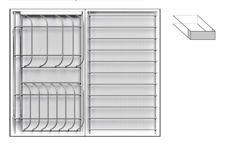 1 для посуды большой (423 x 248 мм, состоит из 1 х держатель металлический, 1 х поддон пластиковый, 2 х защелка-ограничитель)