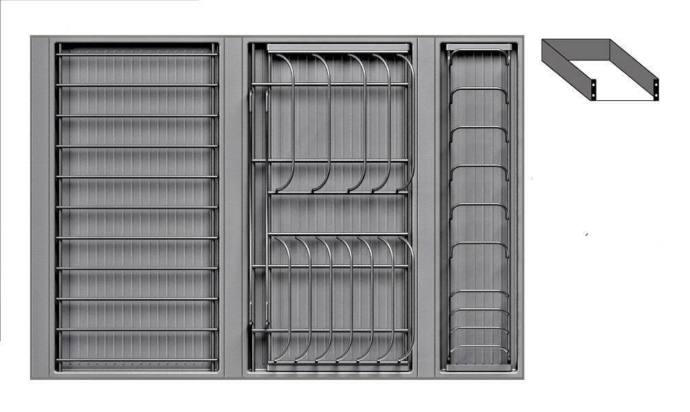 1 для посуды большой (423 x 248 мм, состоит из 1 х держатель металлический, 1 х поддон пластиковый, 2 х защелка-ограничитель)